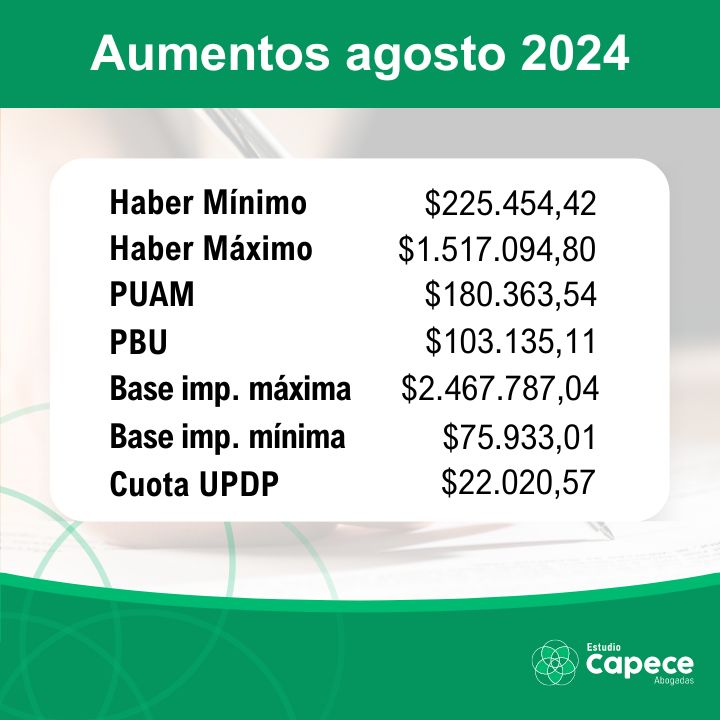 A partir de agosto de 2024, el haber mínimo garantizado se establece en $225.454,42, mientras que el máximo alcanza los $1.517.094,80. También se definieron nuevos topes para las bases imponibles: $75.933,01 para el mínimo y $2.467.787,04 para el máximo.